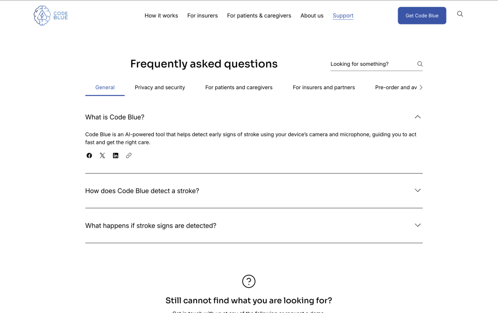 - Code Blue AI needed a professional, trust-building website to drive direct-to-consumer (D2C) adoption of their AI stroke detection device.