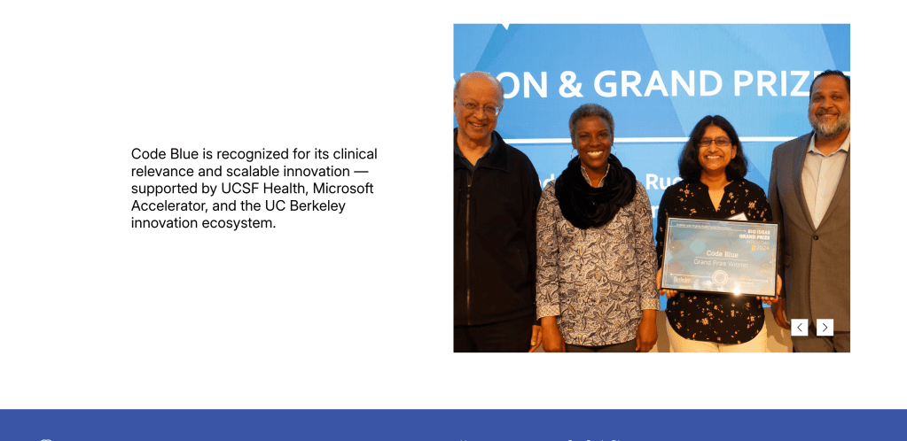Ashmita, CEO of Code Blue AI, grew up watching her grandfather lose his speech and identity after multiple strokes. Years later, her father showed similar symptoms—and even knowing the risks, he delayed treatment. This fear led her to create Code Blue AI, an AI-powered device that detects early stroke symptoms and alerts emergency services. When Code Blue approached me for their website redesign, the challenge was clear: how do we build trust in a life-saving AI device and drive more patients and caregivers to sign up?